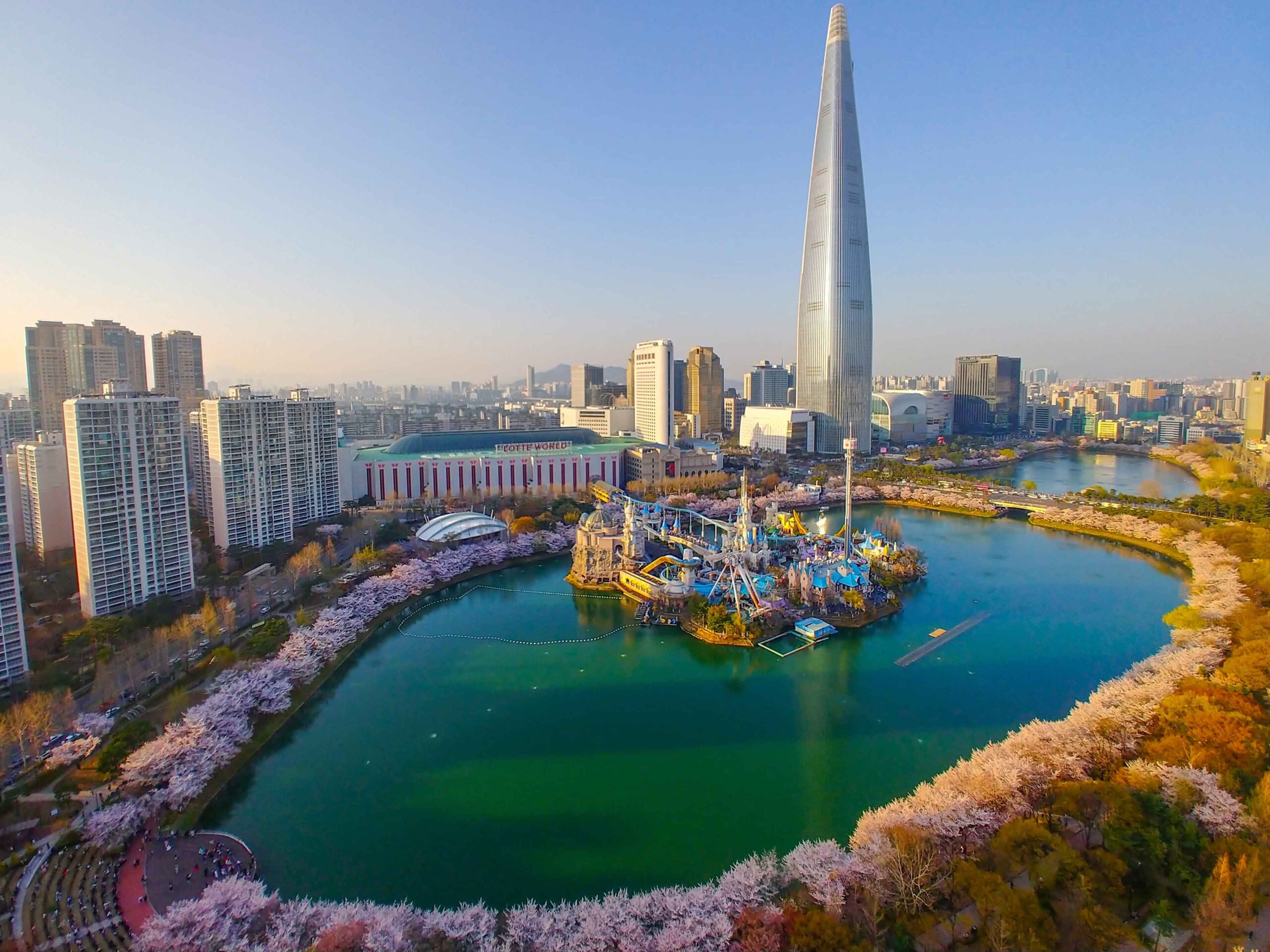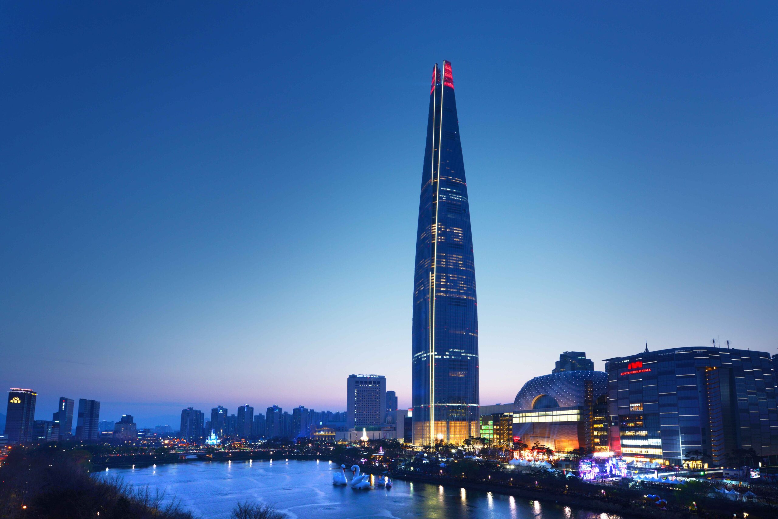 Lotte World Tower is a super-tall skyscraper located in Songpa-gu, Seoul, South Korea. It has 129 floors, 123 aboveground and 6 underground, and stands approximately 555 meters tall. Completed in 2017, it is the tallest building in Korea and one of the top five skyscrapers in the world.